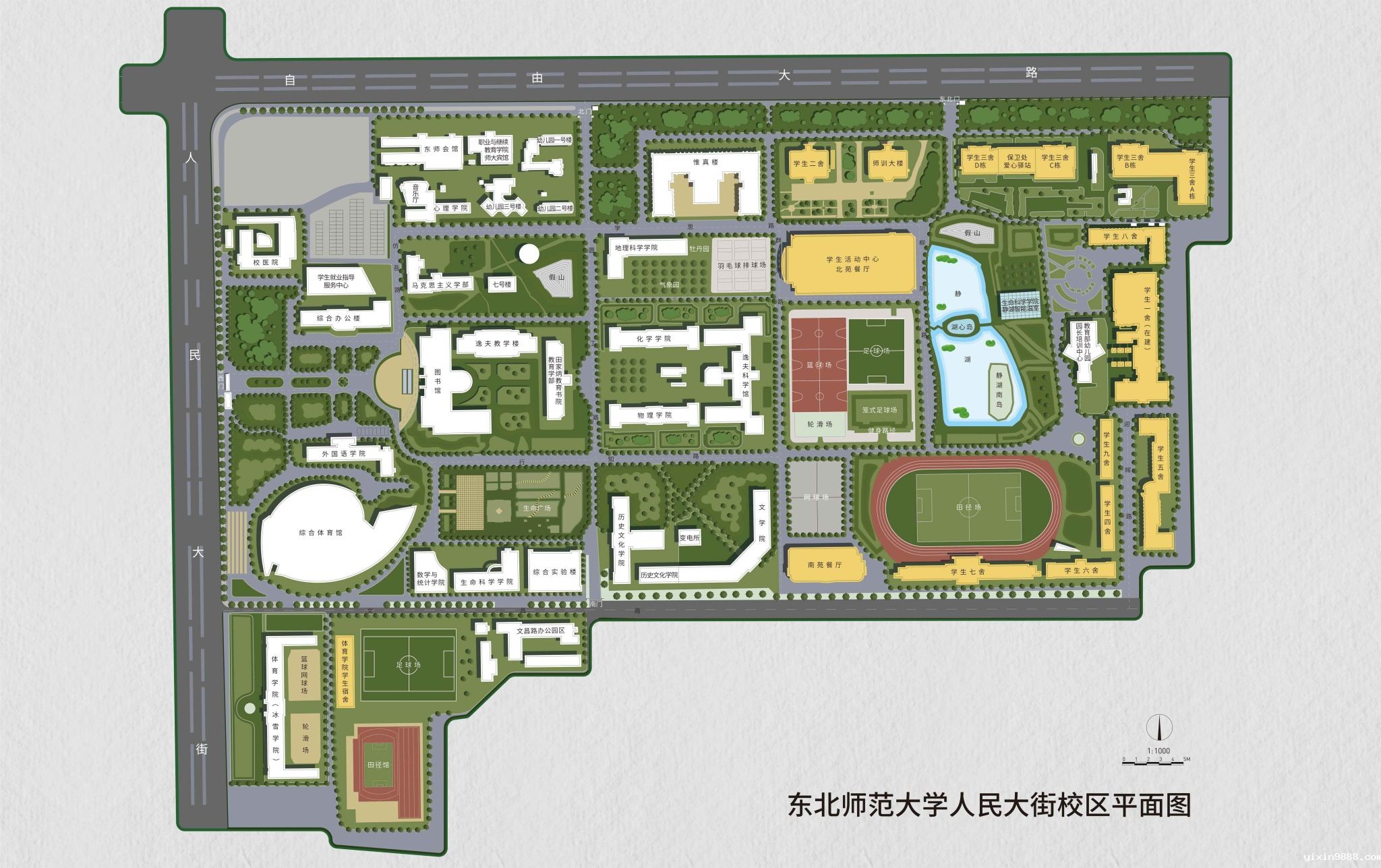 图书馆 档案馆 自然博物馆 东北民族民俗馆 出版社 校医院 综合体育馆